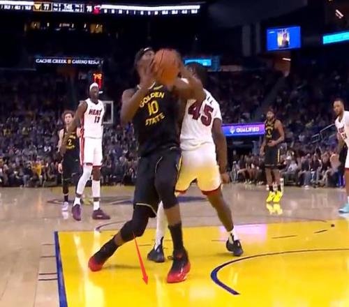 第三節(jié)還剩7分42秒,巴特勒內(nèi)線(xiàn)接球,米切爾是繞前想要破壞這個(gè)球權(quán),兩人在空中有一個(gè)小碰撞,巴特勒落地時(shí)他的右腿有一個(gè)震蕩,右膝小范圍的反關(guān)節(jié)。