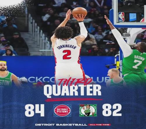 上半場打完,活塞59-51反超8分。坎寧安被限制,托拜厄斯-哈里斯和杰倫-杜倫站出來,兩個人上半場合砍24分9籃板。兩隊三分都挺鐵的,凱爾特人上半場三分球22中6,活塞則是18中4。第三節(jié)綠軍找回準星,單節(jié)三分球11中6。