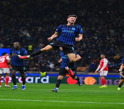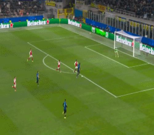 強強對決2隊沒有進行太多的試探,第10分鐘,阿森納前場連續(xù)一腳出球配合,埃澤直傳,熱蘇斯弧頂處回做后立馬反方向包抄,斯凱利立馬分到右側(cè),廷貝爾將球掃到門前,熱蘇斯掃射入網(wǎng),1:0!熱蘇斯結(jié)束了他在歐冠賽場連續(xù)10場的進球荒,個人兩年半第一次在歐冠進球。第18分鐘,勞塔羅直塞禁區(qū),小圖拉姆被鏟倒后立馬起身回做,巴雷拉外腳背打門被擋出,弧頂處的蘇契奇不管三七二十一把腳遠射世界波直奔死角,拉亞做出撲救動作也無濟于事,1:1!