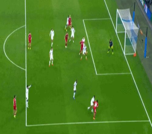 第40分鐘,弗林蓬右路突破傳中,薩拉赫搶點腳后跟巧妙打門,擦著橫梁上沿稍稍高出。