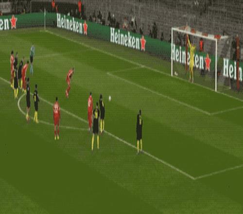 上半場(chǎng)補(bǔ)時(shí)階段,利物浦獲得前場(chǎng)位置不錯(cuò)的任意球,索博斯洛伊看到人墻的漏洞,選擇一腳低射,皮球應(yīng)聲入網(wǎng)。